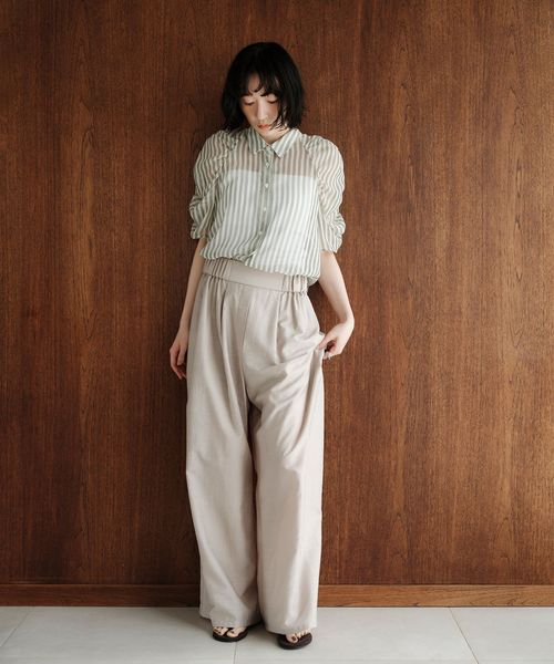 <EMMEL REFINES>EM シアーストライプ ソデギャザー ブラウス