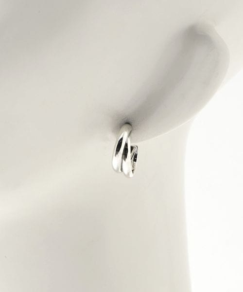 ラインが2本重なったようなデザインの小ぶりなフープピアス。