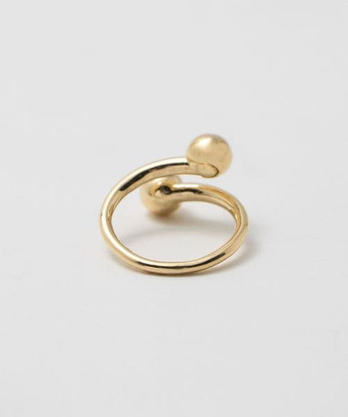指に巻き付くようなラインとボールパーツが印象的なリング。