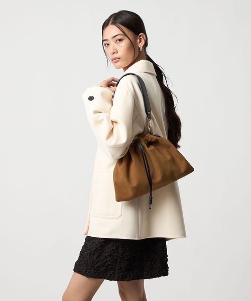 幅広いシーンやスタイルに合わせやすいドロストタイプのショルダーバッグ。