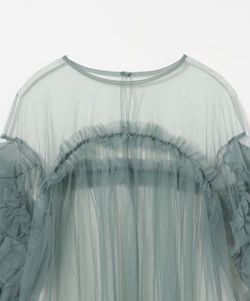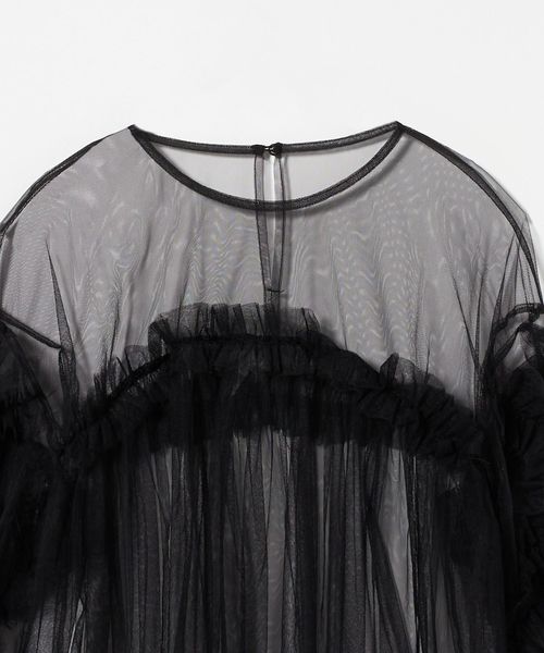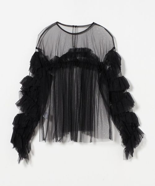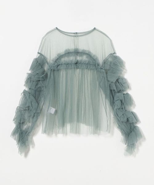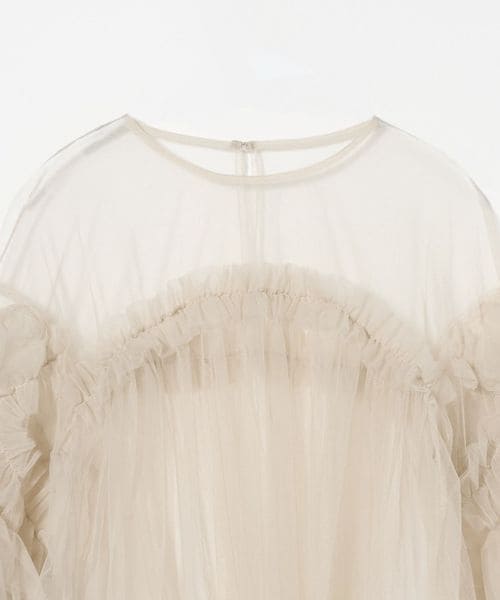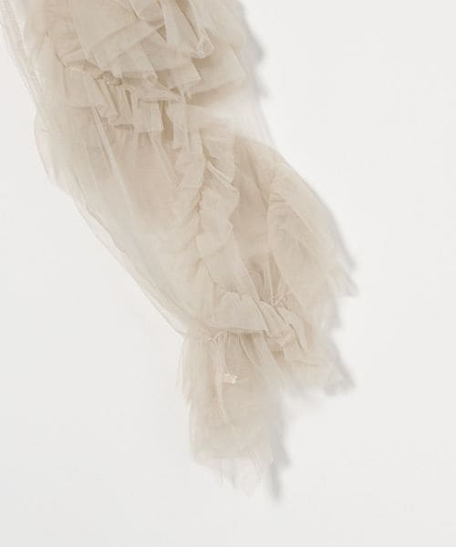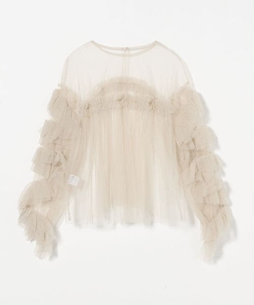 ボリュームのあるフリルが目をひく、粗めのチュール生地で仕立てたブラウス。