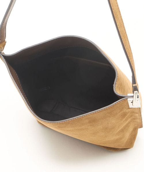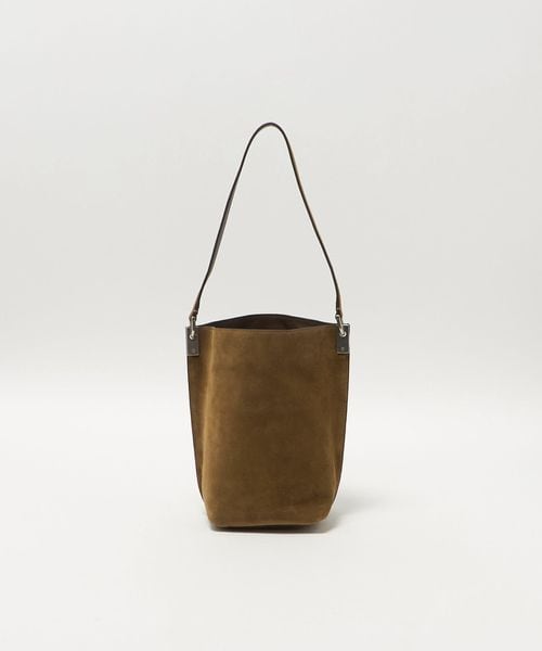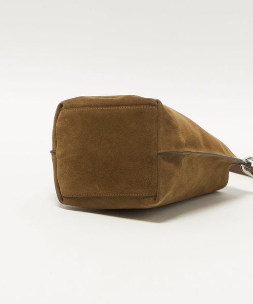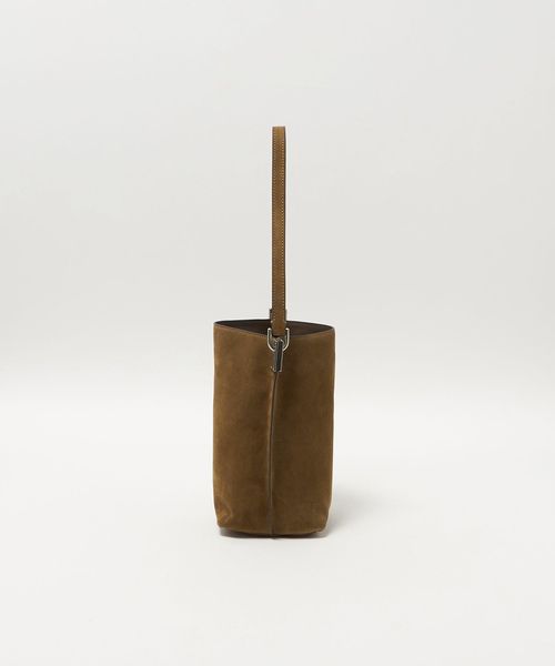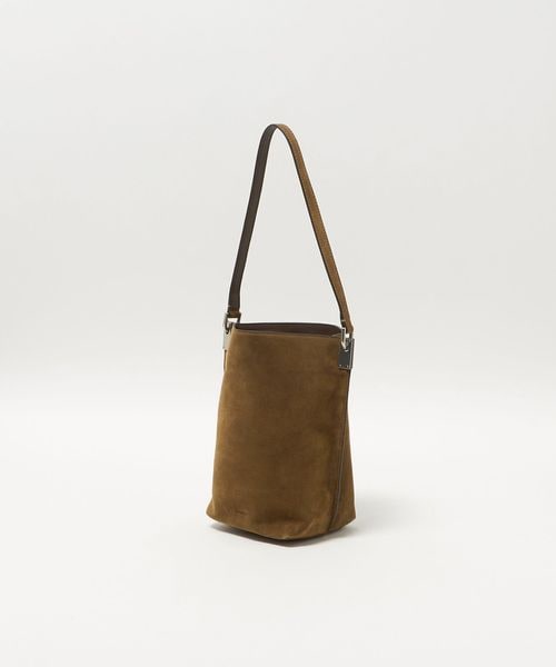 シンプルで程よいサイズ感のソフトなバケツ型バッグ。サイドの金具がさりげなくポイントになっています。