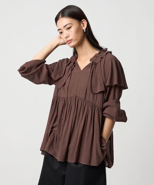 <EMMEL REFINES>EM ネックフリル ギャザーキリカエ ブラウス