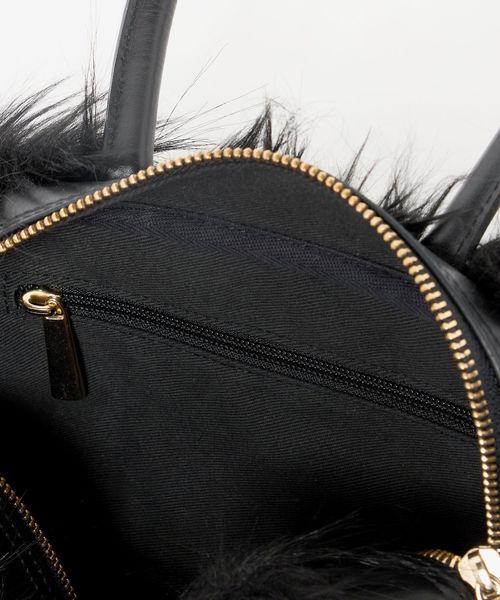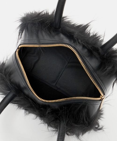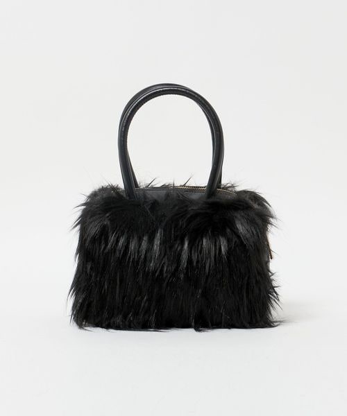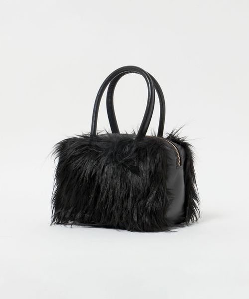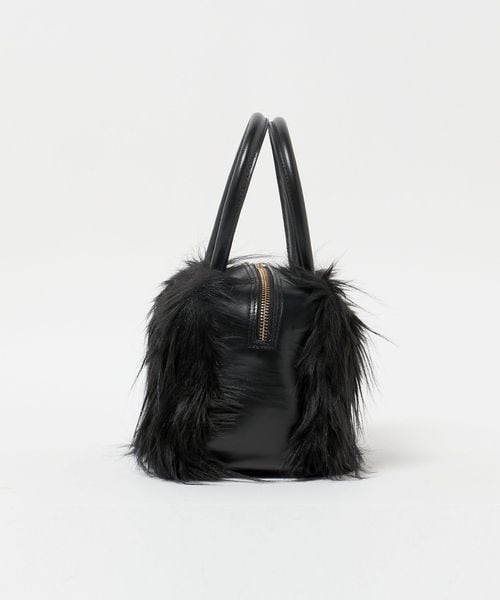 マチが大きめのころんとしたフォルムに、ふさふさの毛足がインパクトのあるミニバッグ。