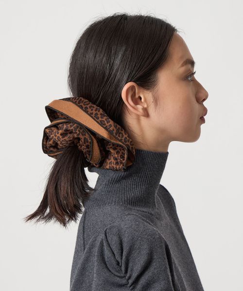 大きめサイズでスタイリングの主役になるレオパード柄のシュシュ。