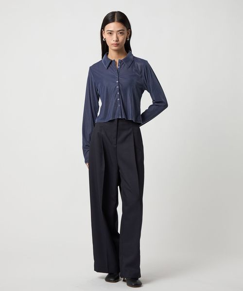 コンパクトなシャツはトップスとしてはもちろん、羽織りとしても活躍。