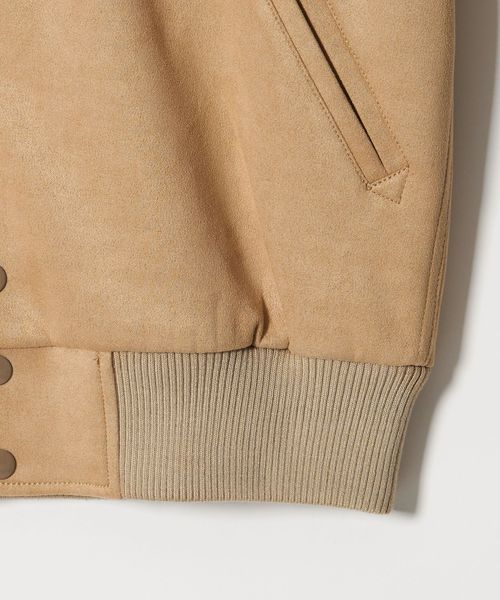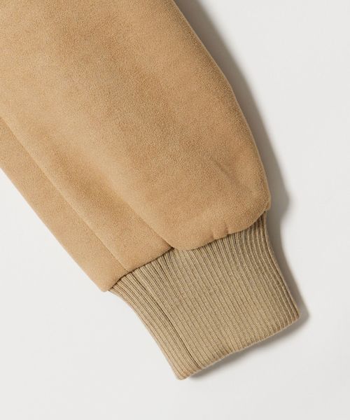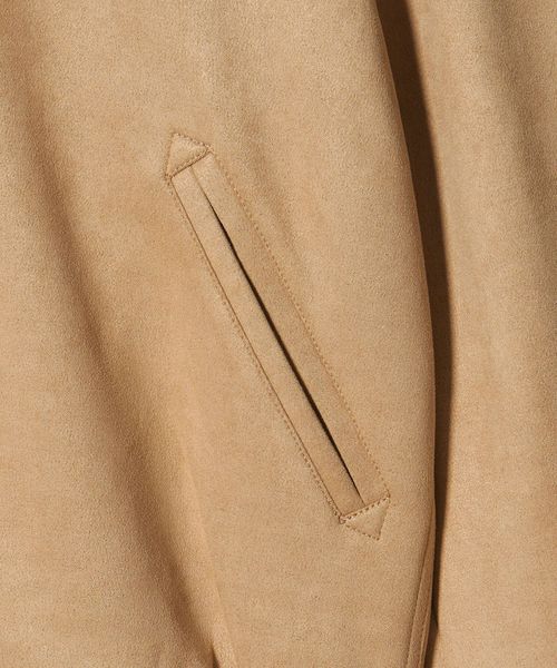 襟のディティールがスポーティになりすぎず、今年らしいスウェードライクな素材がトレンド感のある一枚です。