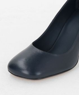 丸みのあるスクエアトゥとシリンダーヒールがポイントのパンプス。