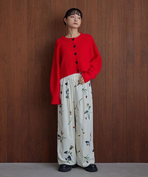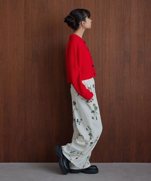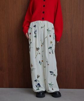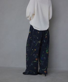 秋らしいカラーと繊細なタッチの花柄が魅力のイージーパンツ。