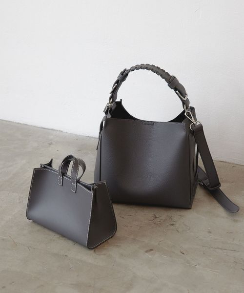 ハンドルの編み上げやミニバッグはステッチ使いがポイントになった、細部までこだわりのデザインを取り入れた、シーズンレス、トレンドレスでお使いいただけるバッグです。