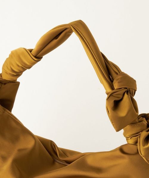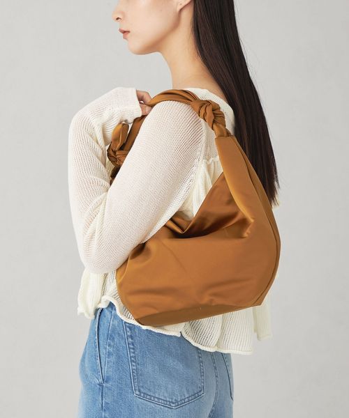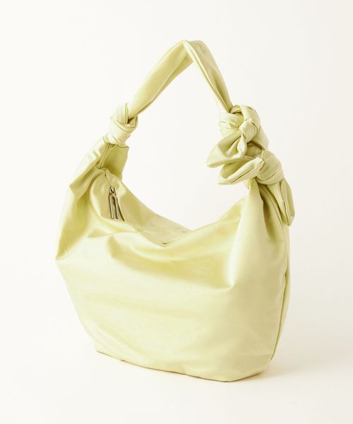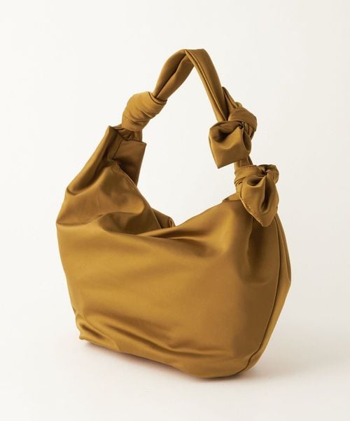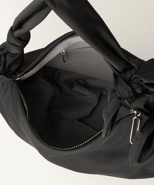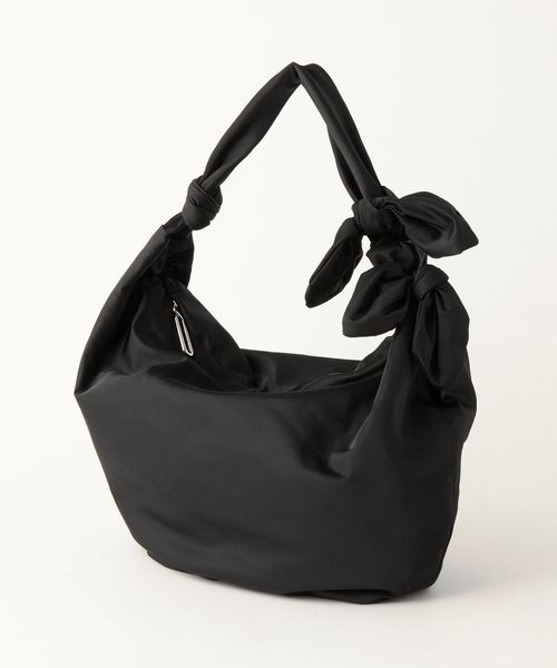肩に掛けると2つ並んだリボンがポイントになるハーフムーン型のショルダーバッグ。