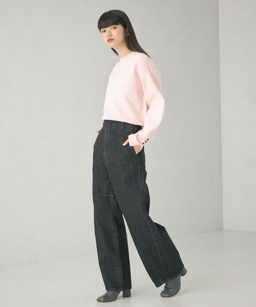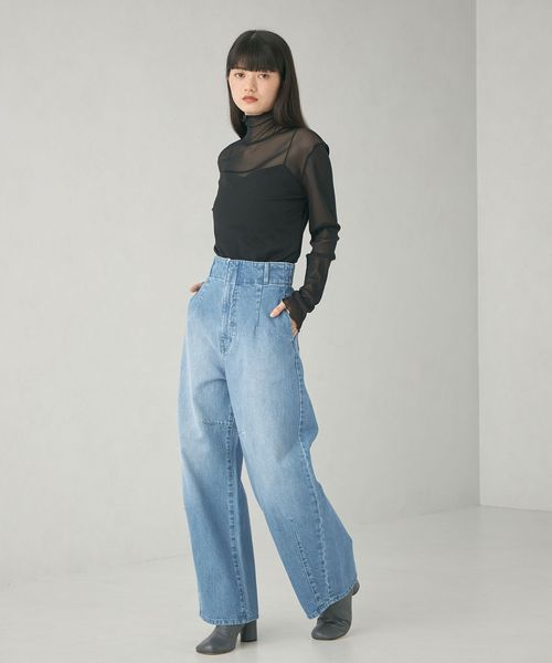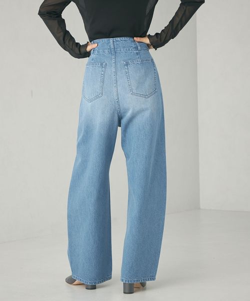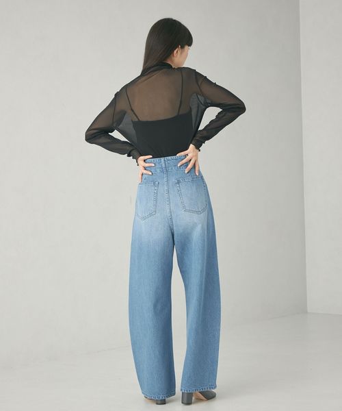 ハイウエストで腰回りがすっきり見えるシルエットがポイントのカーブデニム。