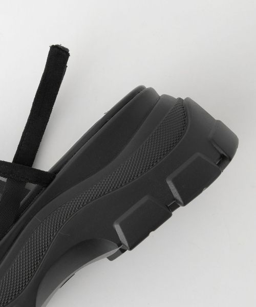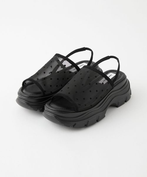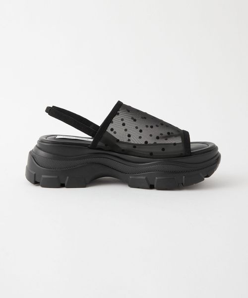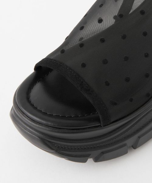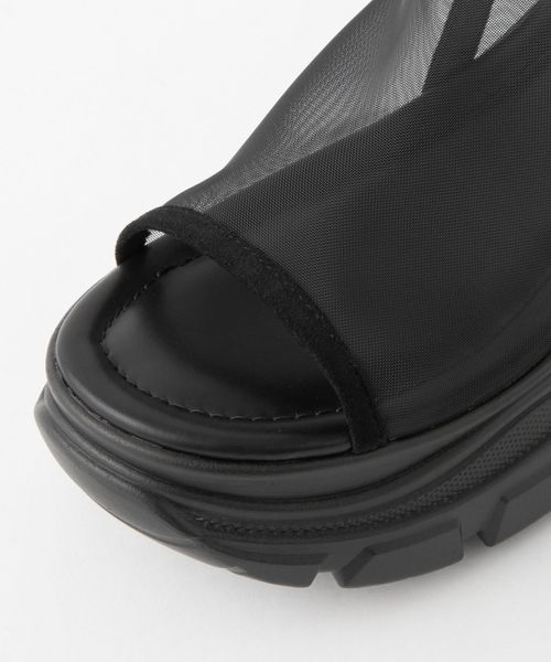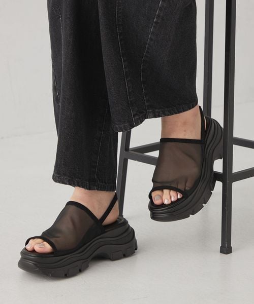 シアーなチュール素材のアッパーとボリュームソールが印象的なサンダル