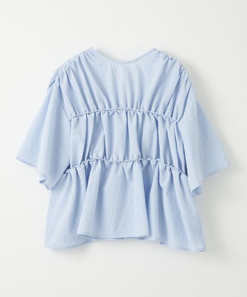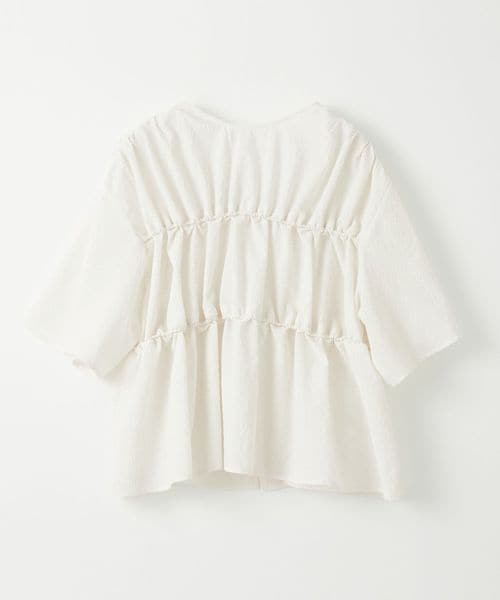 涼し気な素材で夏まで活躍するギャザーブラウス