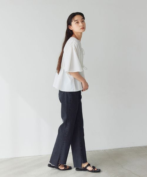<EMMEL REFINES>EM カラミタンブラー リボンギャザー ブラウス