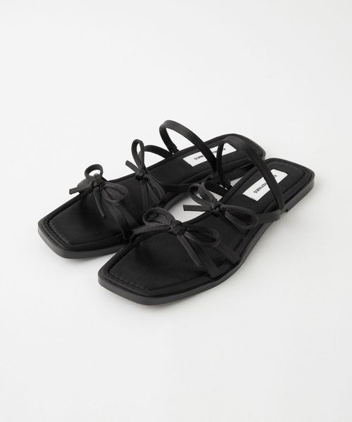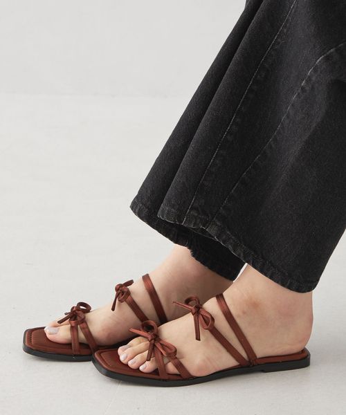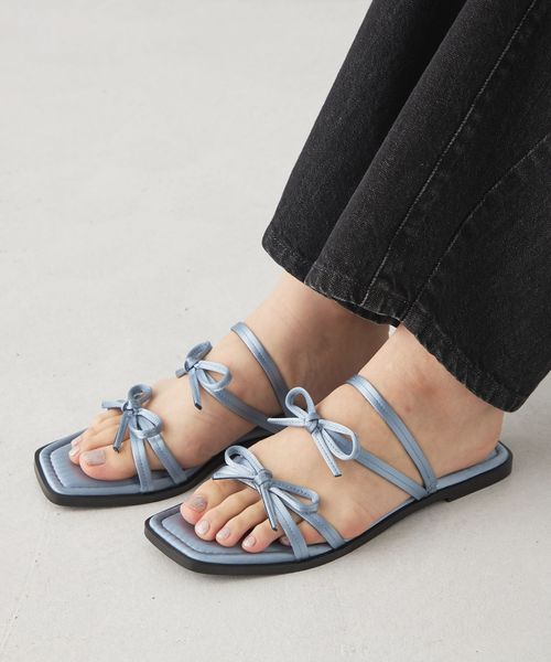 ダブルリボンがシンプルな夏のスタイルにアクセントをプラスしてくれるフラットサンダル。