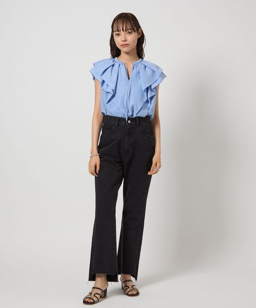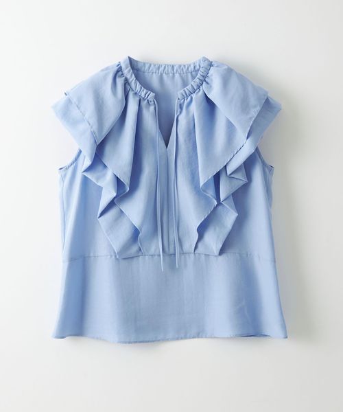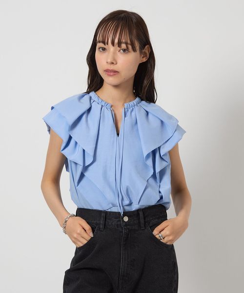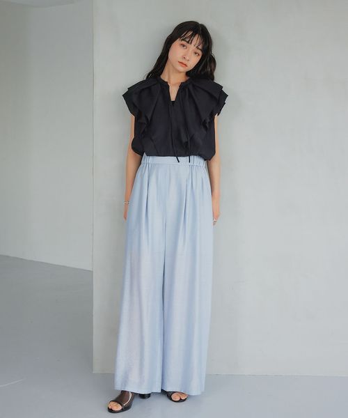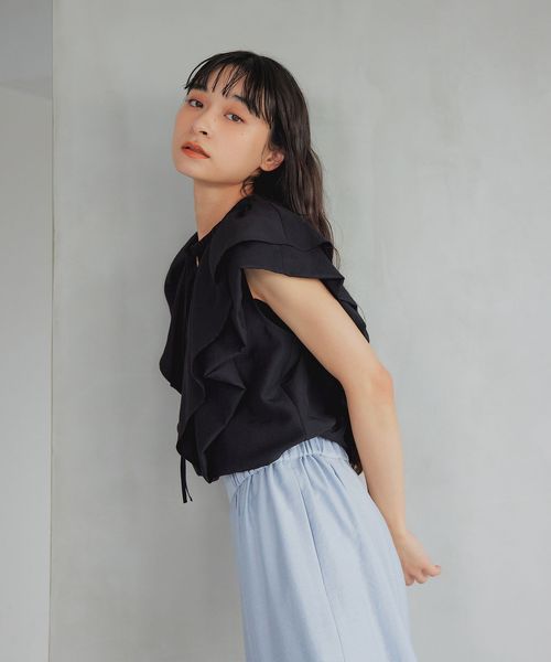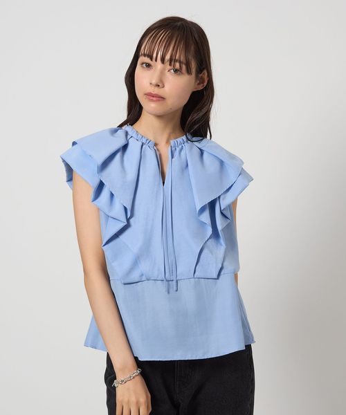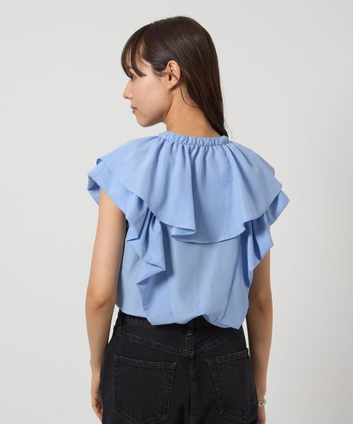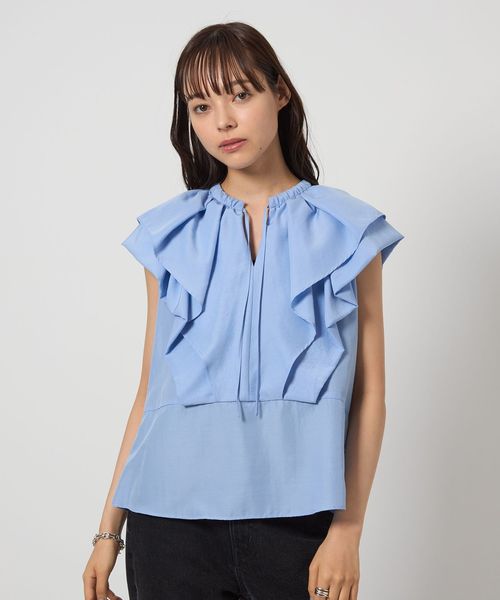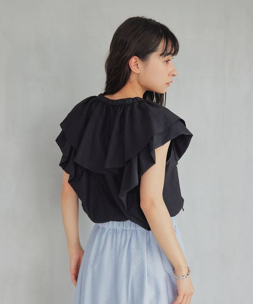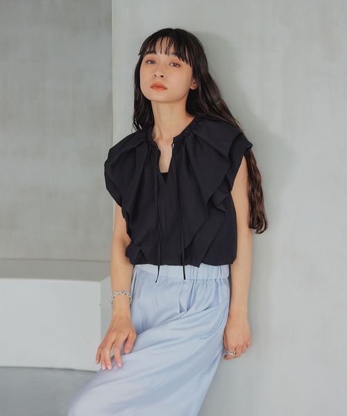<EMMEL REFINES>EM フィブリルサテン Wケープ ブラウス