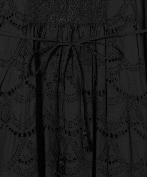 刺しゅうデザインが印象的なサマードレス。ブラックのカラーで都会的なスタイルも楽しめます。