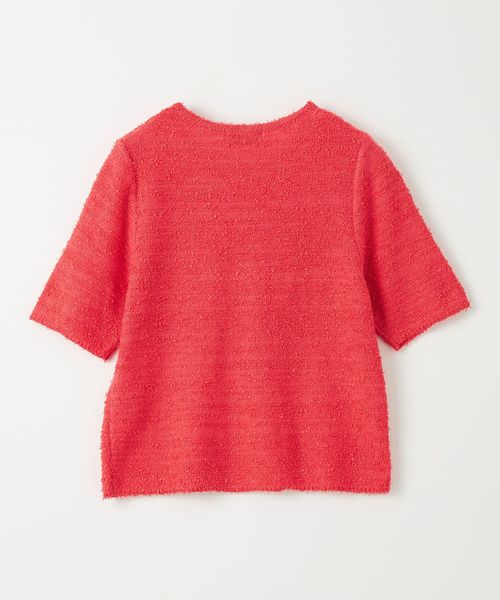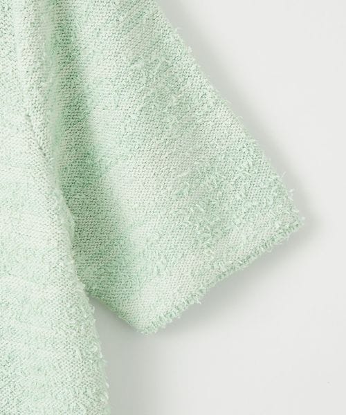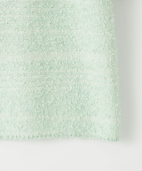 コットンの糸とテープヤーンを一緒に編むことで、サマーツイードのような表情に仕上げています。