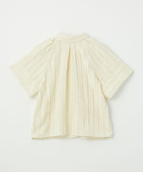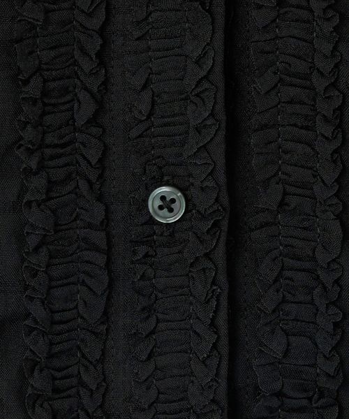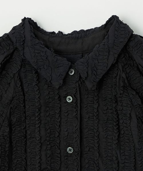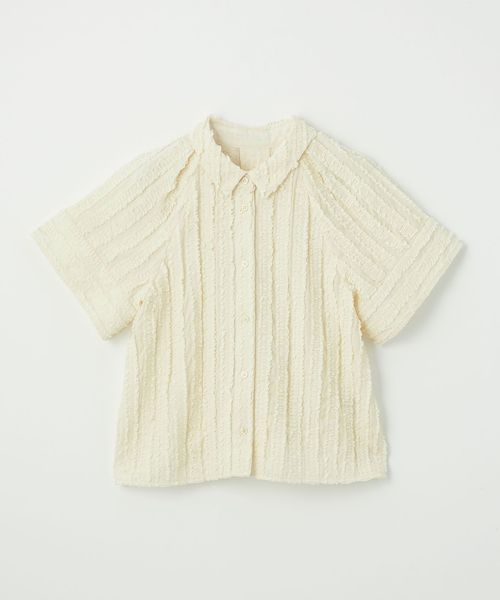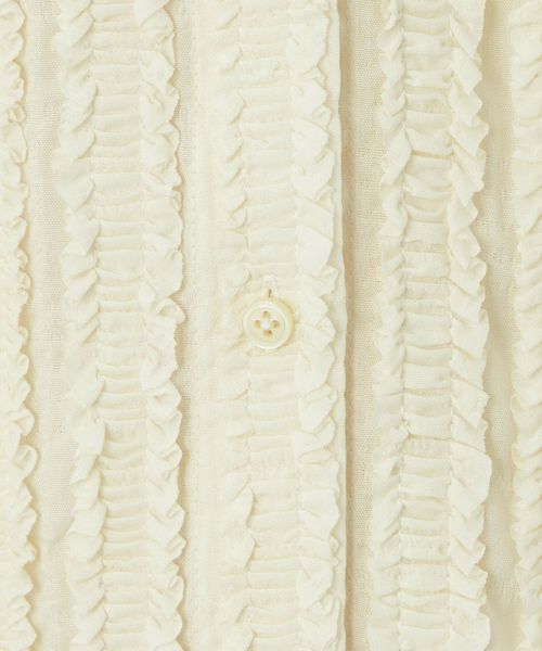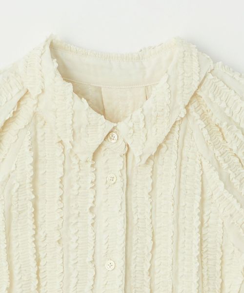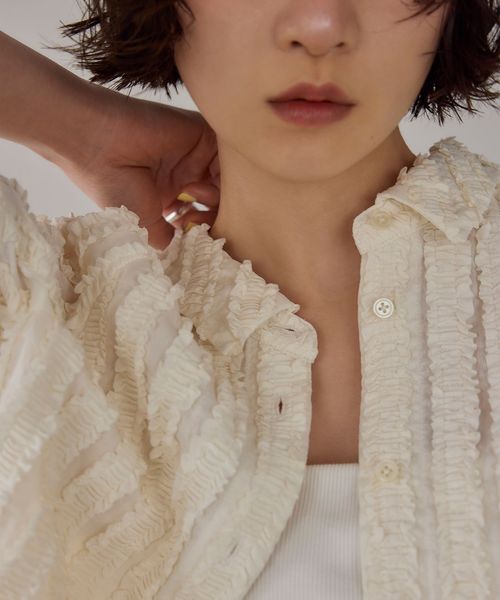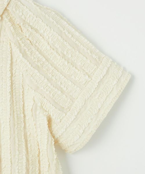 ストライプ状にあしらわれたフリルが映える半袖シャツ。