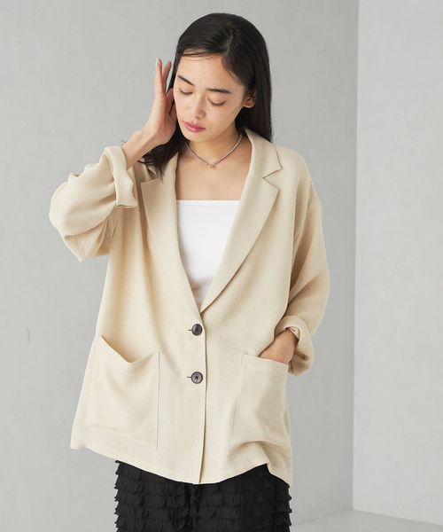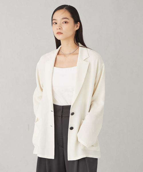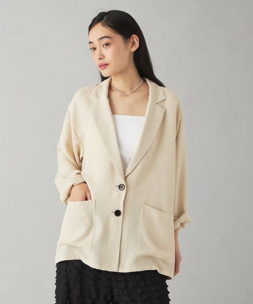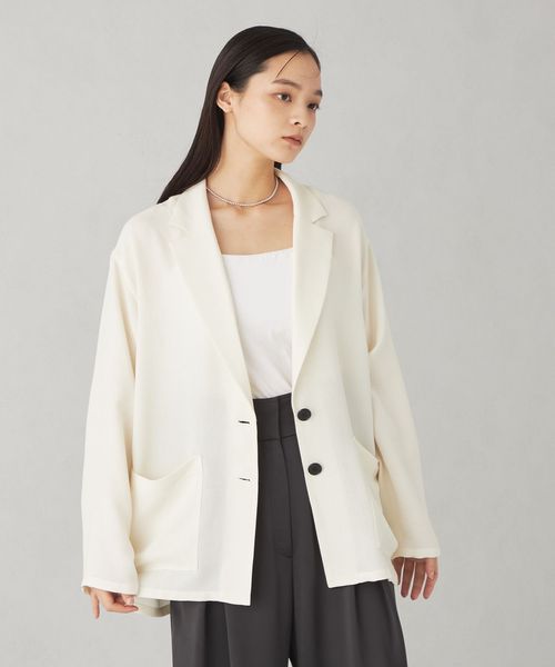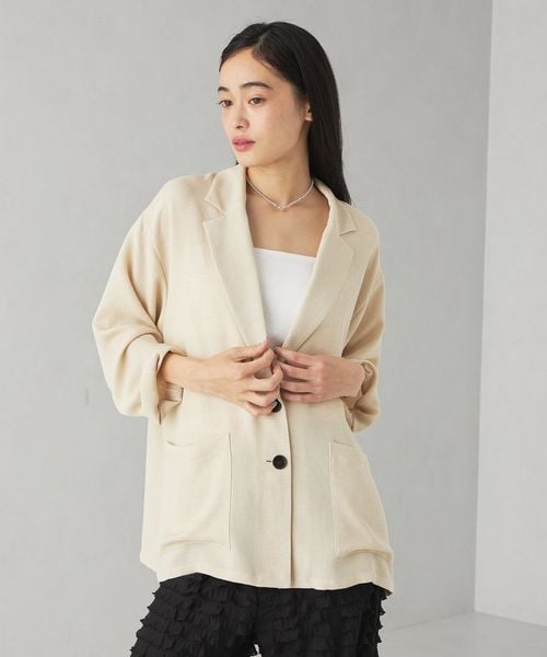 今年トレンドの絡み織の素材を使用したシャツ感覚で羽織れるジャケット。
