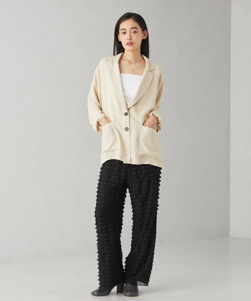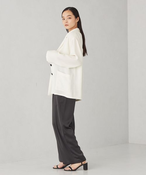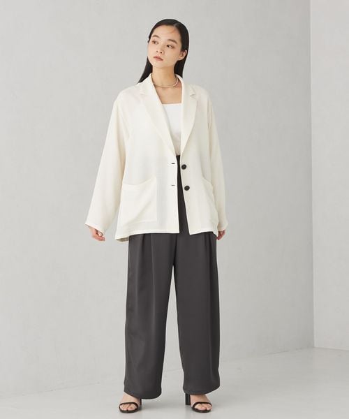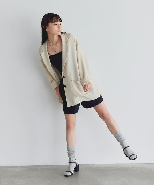 デコルテの見えるインナー合わせだとより今っぽいスタイリングに