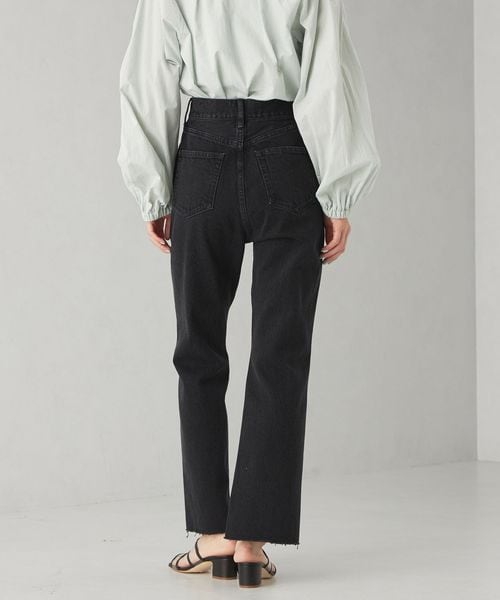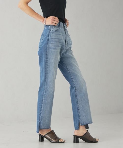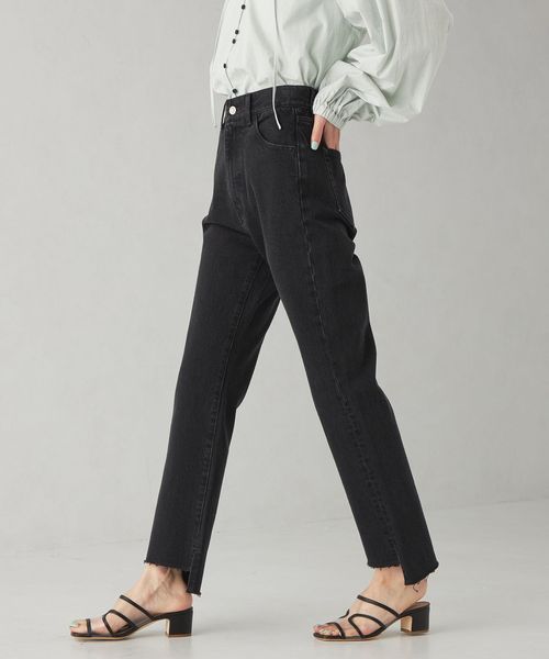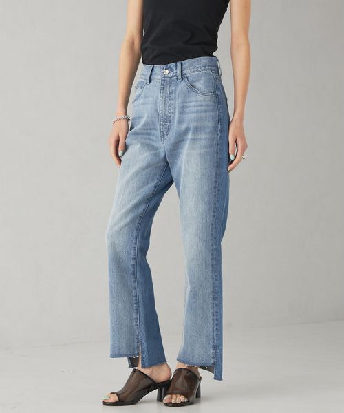 ラフな断ち切りの裾で抜け感のある着こなしが楽しめます。