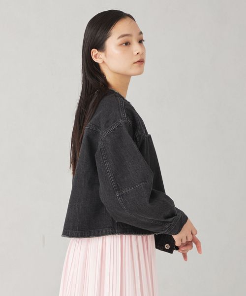 <EMMEL REFINES>EM フリンジ ノーカラー デニム ジャケット