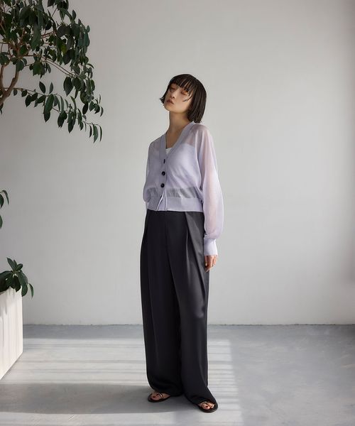 カーディガンとして羽織るのはもちろん、ボタンを留めてトップスとしての着こなしもおすすめ。