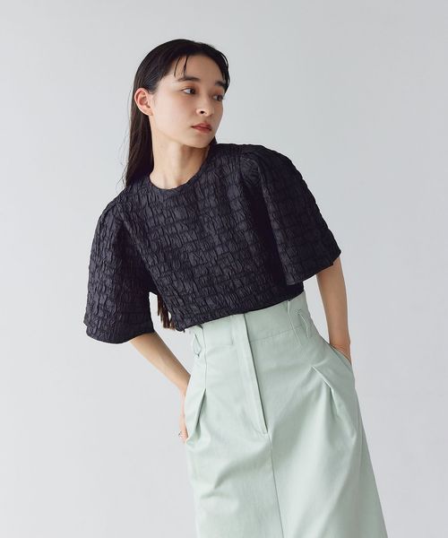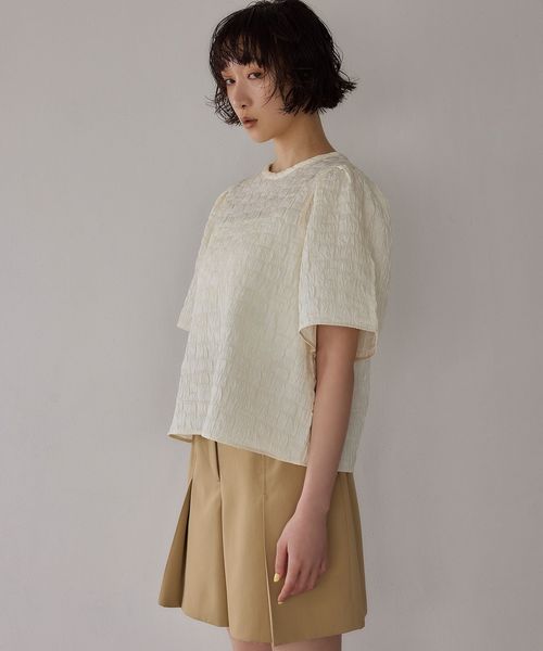 <EMMEL REFINES>EM フクレジャカード クルーネック ブラウス
