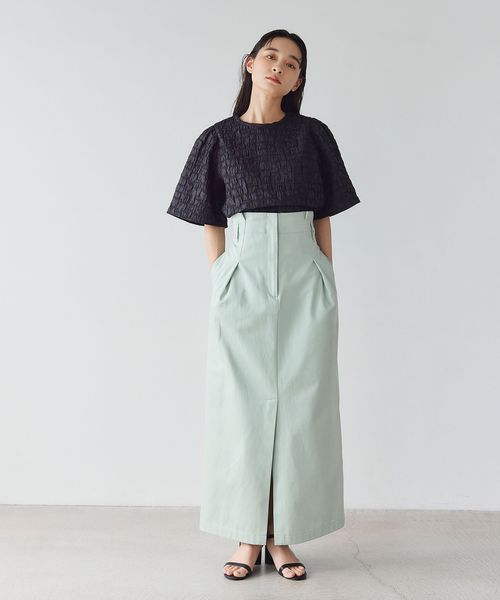 ブロック風の凹凸のある素材が特徴のブラウス