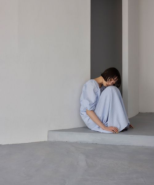 トップス部分は袖まわりにパフっとボリュームを効かせ、ネックに施したタックが顔周りを華やかに。