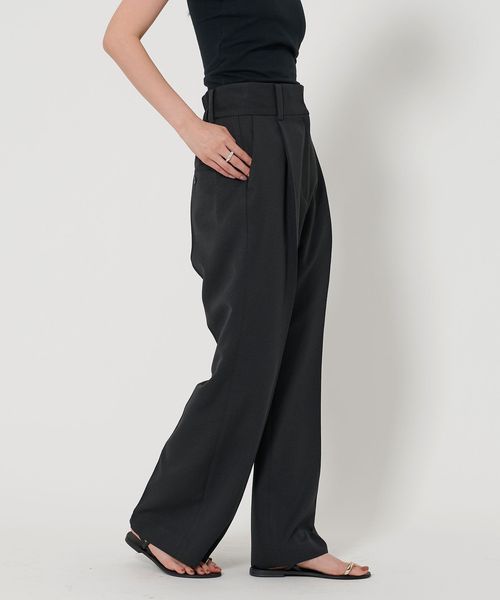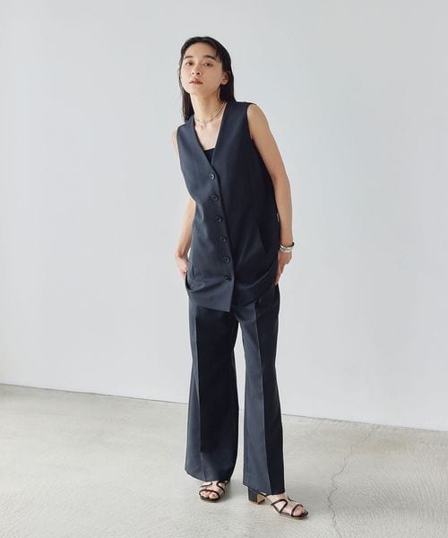 ハイウエストでストレートからほんのり膝を細くしたややフレアなシルエット。