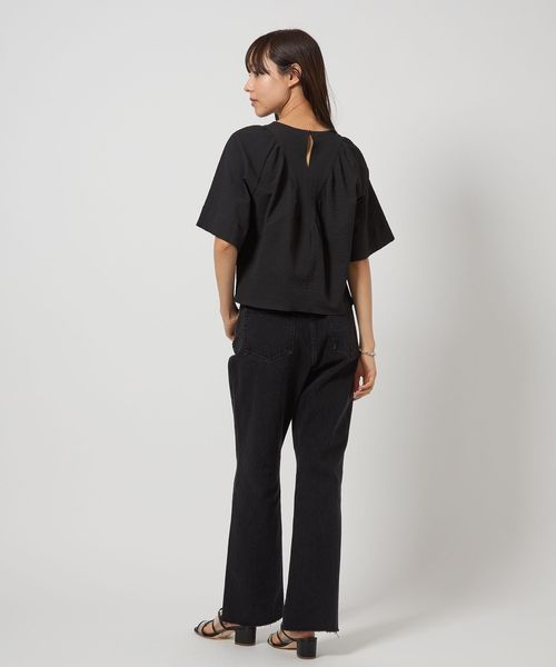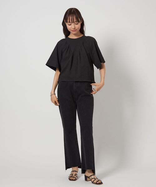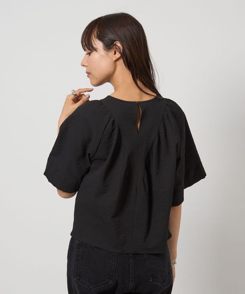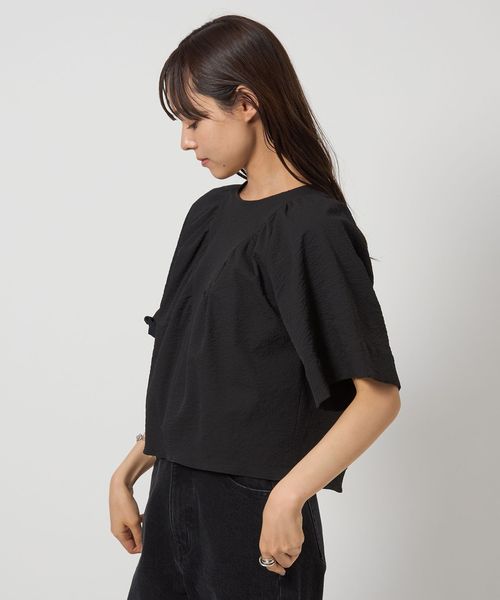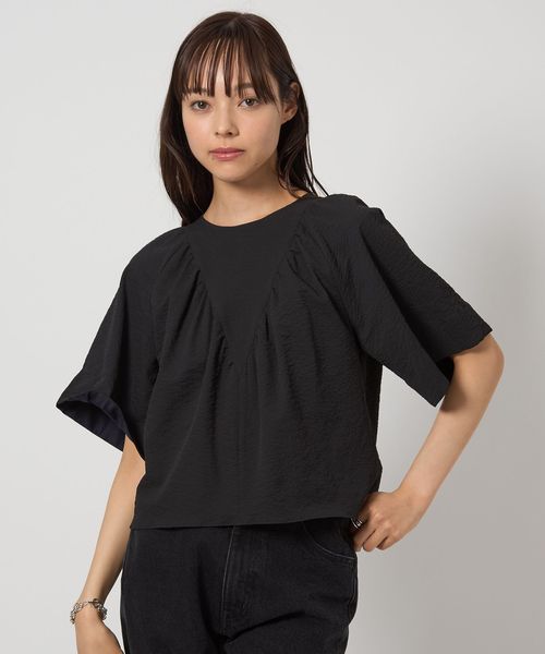 <EMMEL REFINES>EM サッカーVネック キリカエ ギャザー ブラウス