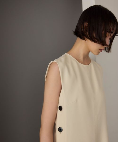 サイドに効かせた大きめの配色ボタンがポイント。他はそぎ落としたデザインでミニマルに仕上げいています。