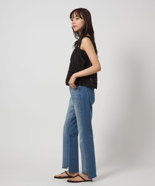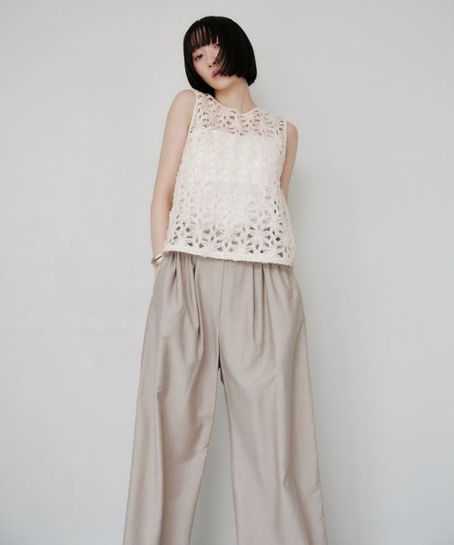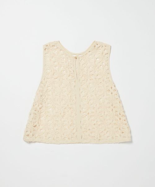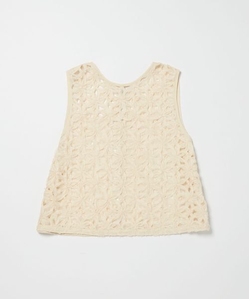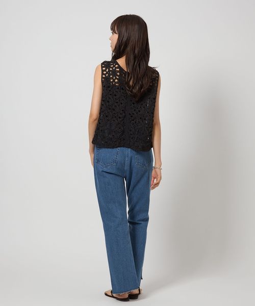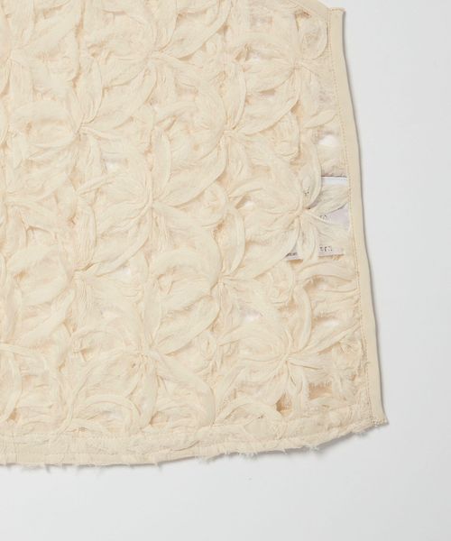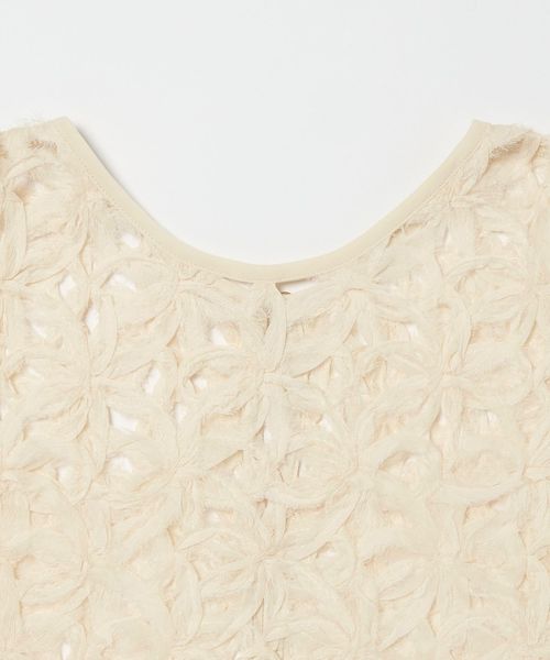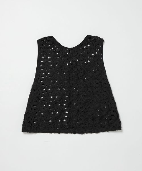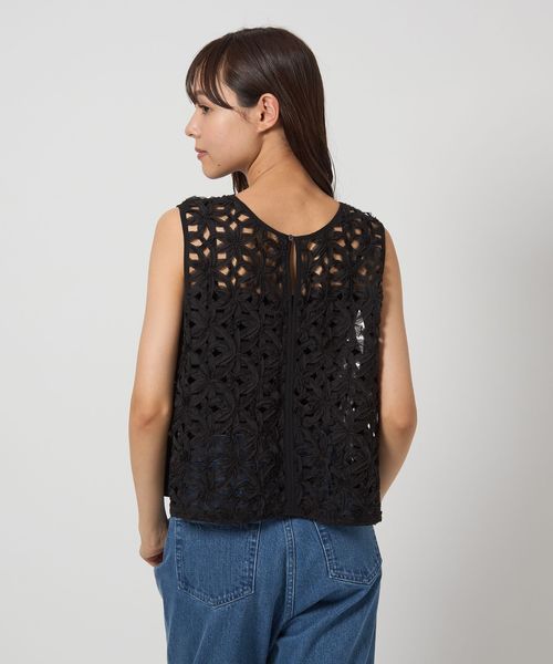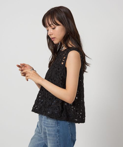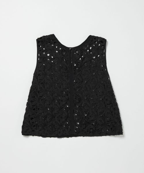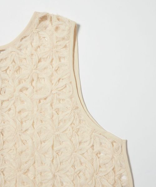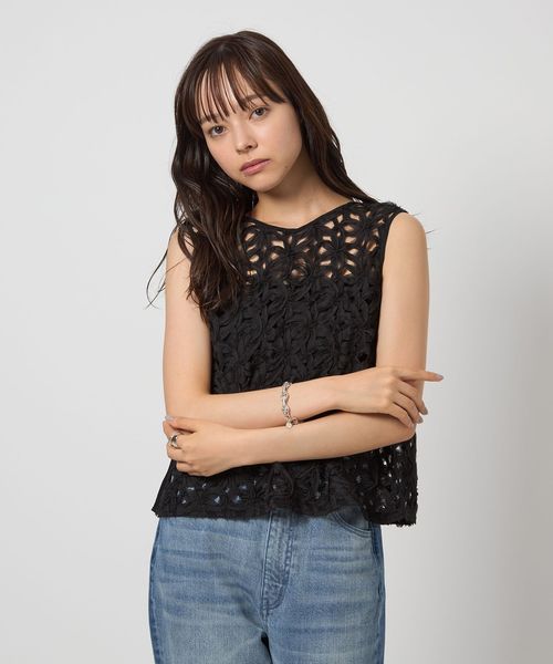 フラワー柄のテープ刺しゅうが印象的なノースリーブトップス。