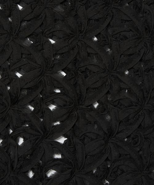 楊柳シフォンのテープを幾何学柄のような花柄に刺しゅうしました。