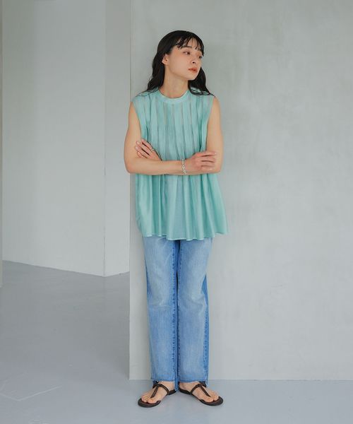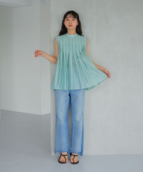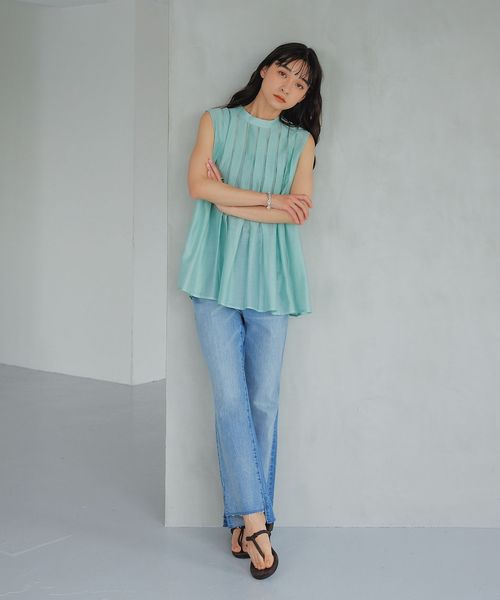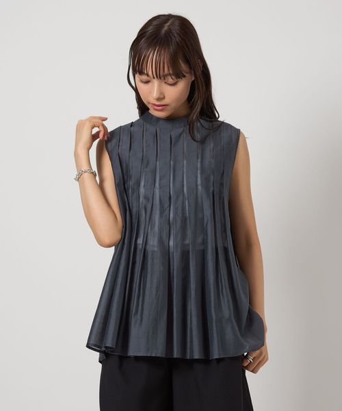 <EMMEL REFINES>EM タックプリーツ ノースリーブ ブラウス