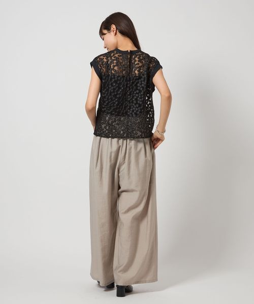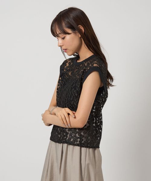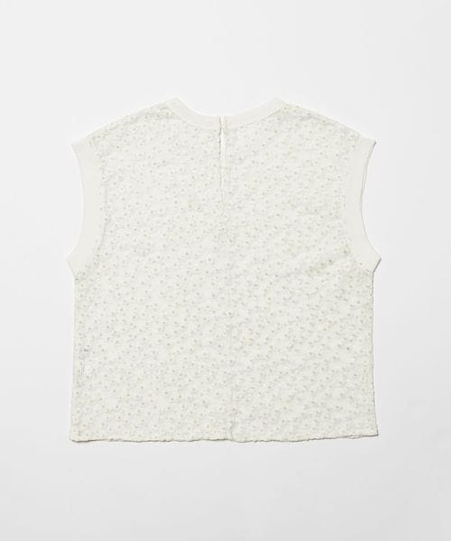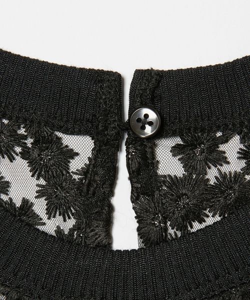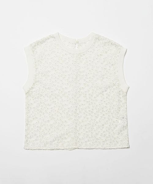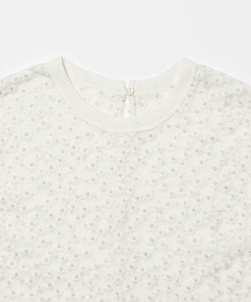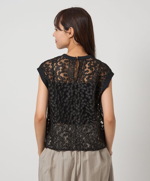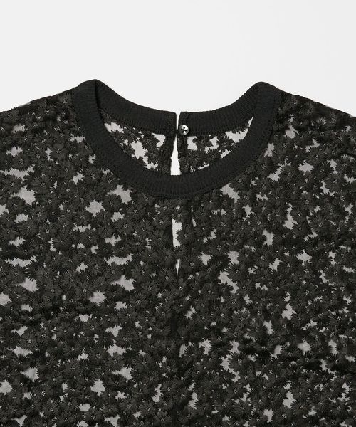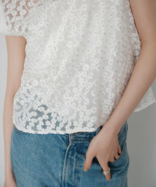 ランダムな小花柄をチュールに刺しゅうした透け感のある素材が夏に映えて可愛いブラウス。