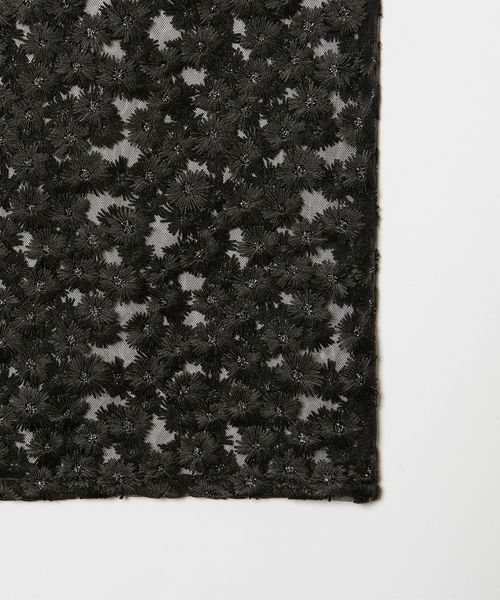 チュールベースにふんだんに花柄を刺しゅうした素材が魅力的。