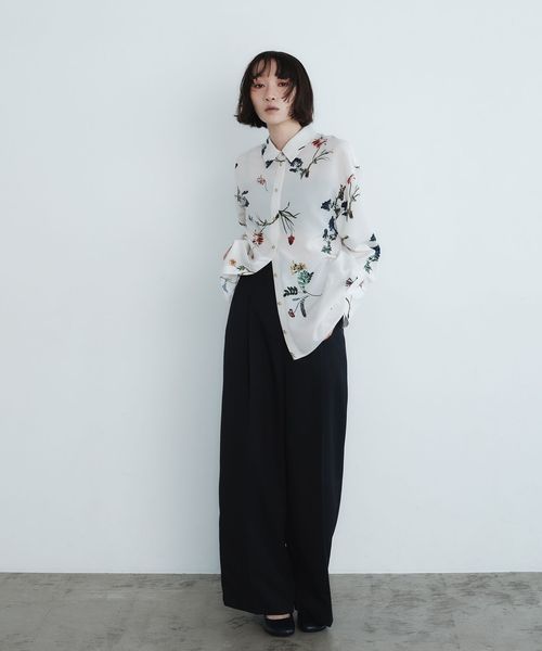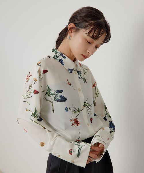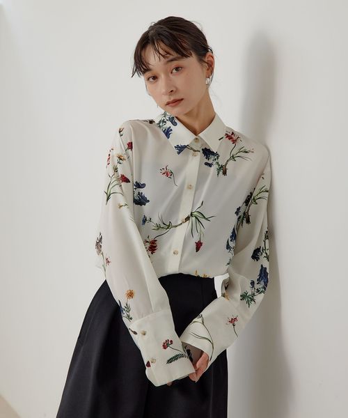 繊細なタッチのオリジナルフラワープリントを施したシャツ。