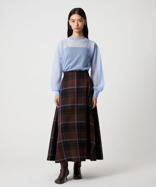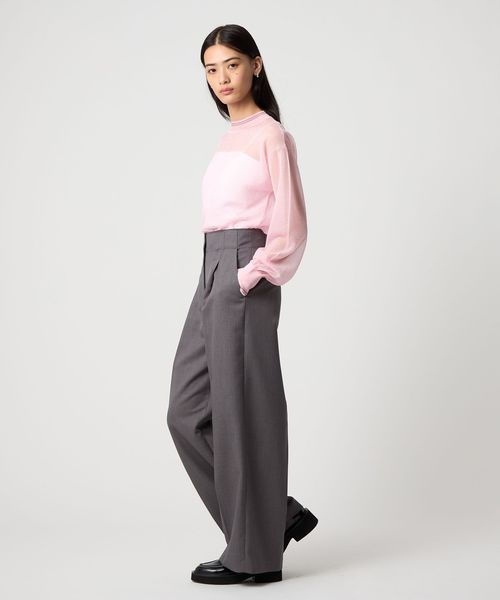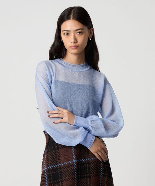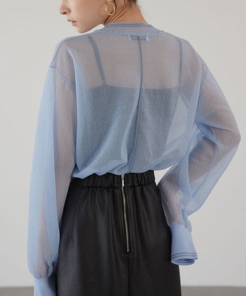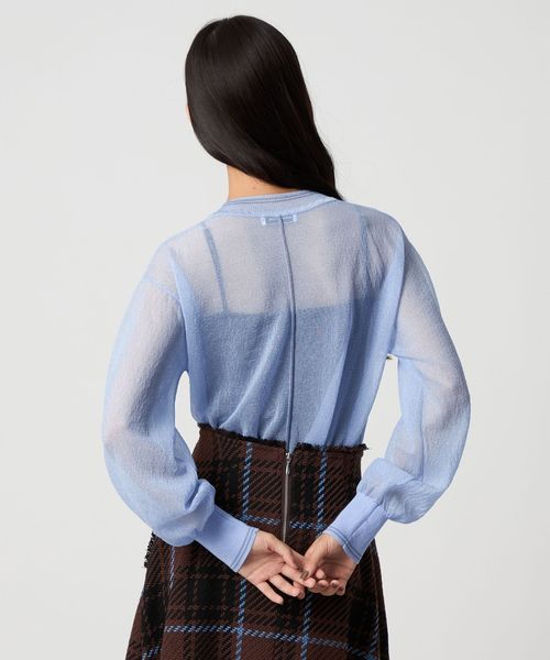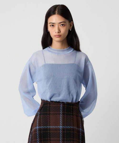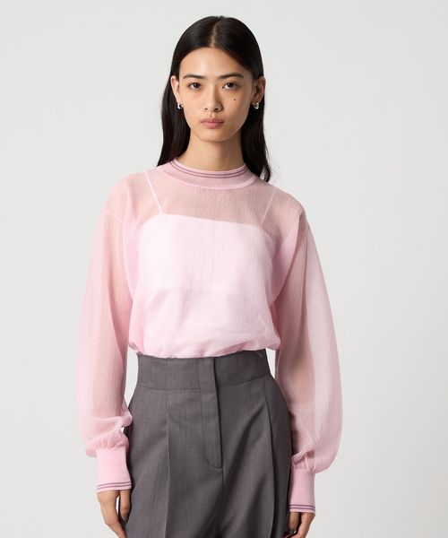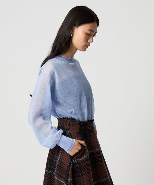 ニュアンスカラーとシアー素材がポイントのニットプルオーバー
