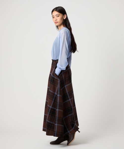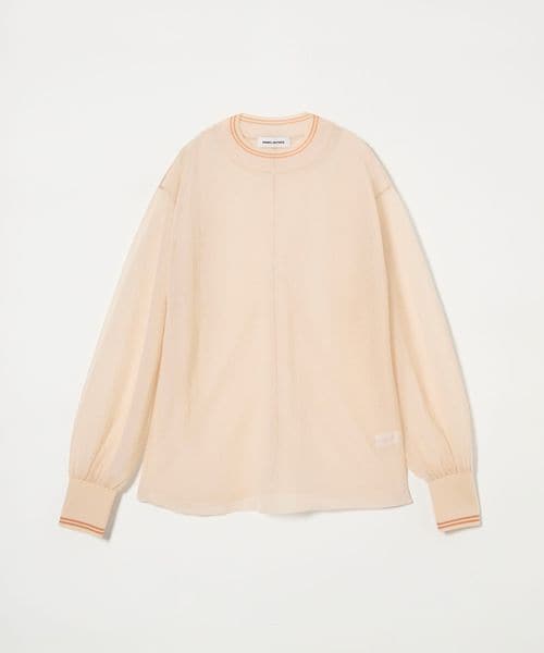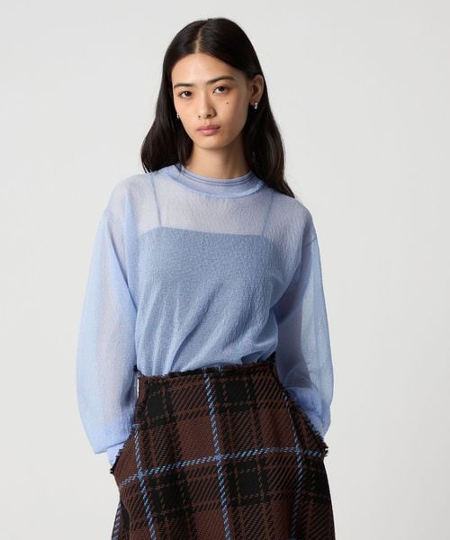 ロンT感覚で着られるシアーニット。ロンTよりもカジュアルになり過ぎず抜け感のある印象。