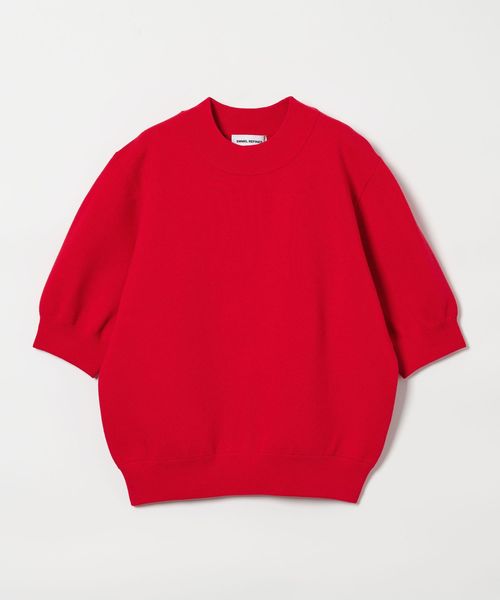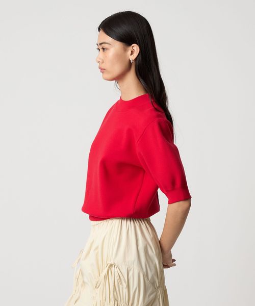 ミニマルなデザインながらも今年らしいカラーが映えるショートスリーブニット。