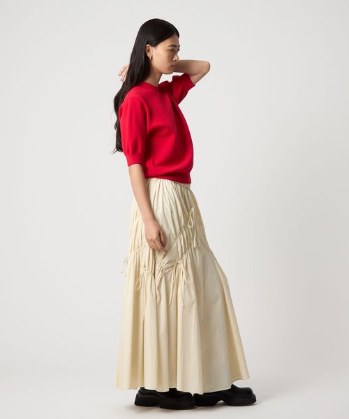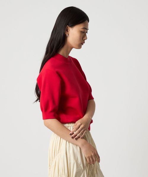 モードにもカジュアルにも合わせやすいショートスリーブニット