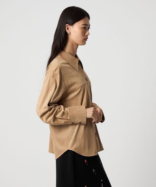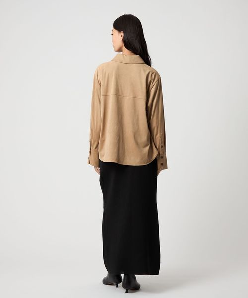 しっとりとした肌触りの軽やかに着られるスウェードライク素材のシャツ。