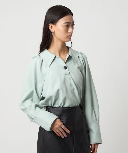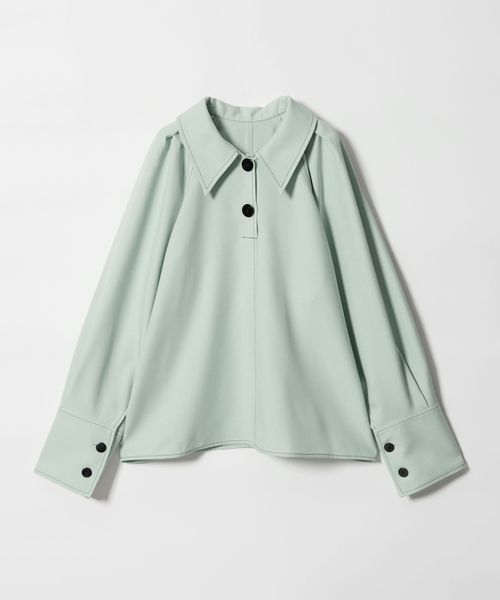 大きめの襟と配色ボタンが顔周りの映えポイントになったプルオーバータイプのシャツ。