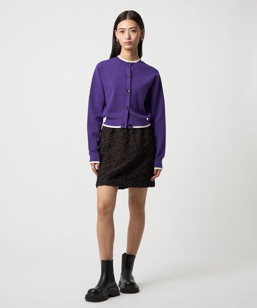 プルオーバーとカーディガンの2WAYで着られるスウェットライクなニット。