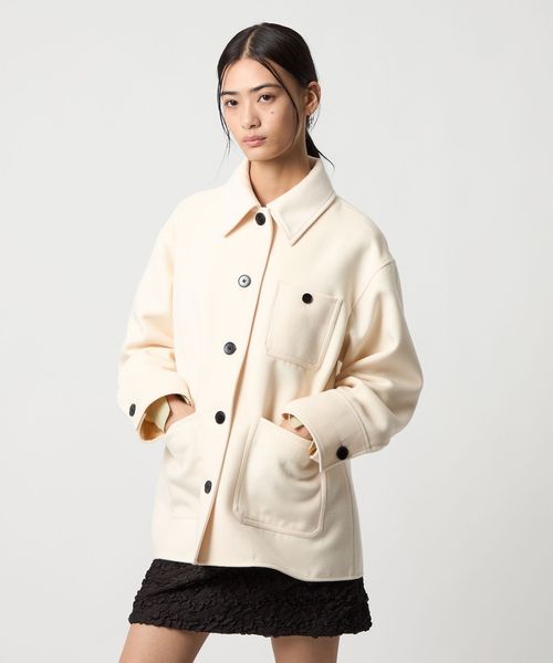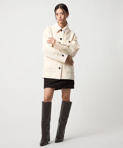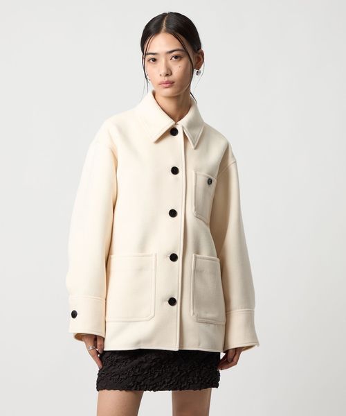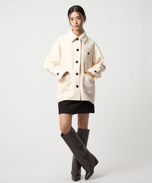 カジュアルになり過ぎずクリーンでモードな印象に見える様にサイズ感や襟の形にこだわりました。