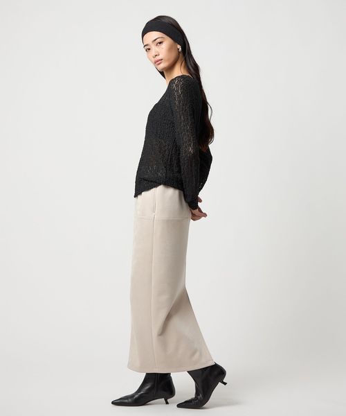 切り替えとステッチのディティールを入れたナローシルエットのスカート。